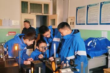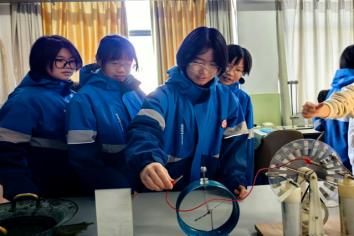 师生代表热情引导,带领学生们开启了充实的研学之旅。先是参观了物理演示实验室,实验室向研学团展示了声学、力学、电磁学等基本原理的实际应用,指导学生们体验了鱼洗盆、锥体上滚、变音钟、牛顿摆、陀螺仪等仪器设备。接着到了几何光学实验室,实验室演示了小孔成像、光的折射、反射、衍射等奇妙现象。还参观了激光技术实验室,实验室向研学团演示了高精度实验。最后参观了扫描电镜实验室,实验室向研学团展示了电子显微镜下的微观世界。整个研学过程学生们紧紧围绕在旁,并主动参与、亲身体验。活动结束后,同学们纷纷表示收获颇丰,更加深入地了解了物理学的奥秘和科学研究的魅力。