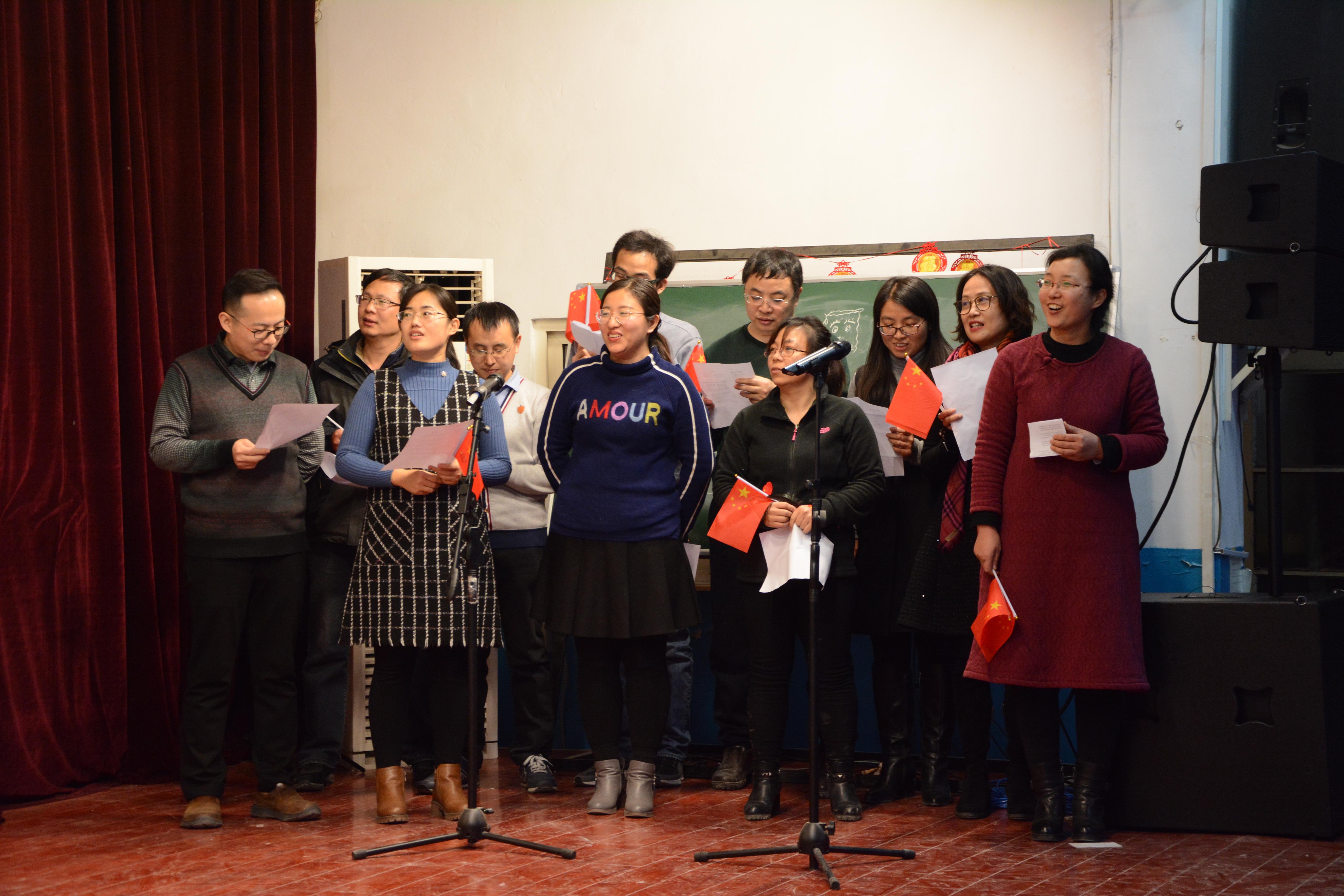 老师对祖国深沉的热爱;能源系老师带来的《亲子SHOW》展示了一个个温馨幸福的家庭,借此祝老师们阖家欢乐;由蒋锴、张亚芳、吴冰、唐文婧老师带来的诗朗诵《再见,你好,起航筑梦》抑扬顿挫,鼓舞心灵。罗老师深情演绎的《父亲的草原母亲的河》感恩父母,给予老师们真挚的祝福;表演中游戏《面粉接力》和《抢水瓶》让所有老师参与其中,笑迎新年。由大学物理教学部集体带来的合唱《歌唱祖国》让每一位怀揣赤子情怀的教师情不自禁跟唱,对物理威尼斯娱乐城