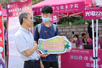 迎新报到现场,咨询新生入学手续办理进展情况,针对学生所关心的内容进行了交流。