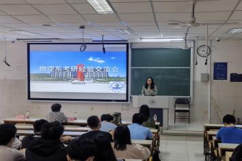 物理系主任王静、物理系教授、硕士生导师李萍受邀出席,2023届考研优秀毕业生山东大学张明慧、大连理工大学陈星宇作为分享嘉宾参加交流会。