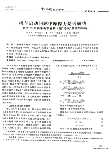 刘存辉同学深入剖析高考试题,以山东卷、湖南卷及北京卷等为典型代表做深入分析,研究发现,新高考注重跨学科知识的综合应用,特别是“数理融合”。以2023年山东卷第8题为例,运用更高阶的数学知识,深入剖析了高中物理“功与功率”一节“机车启动”问题中摩擦力是否做功问题,纠正了学生存在的迷思概念,以数学的严谨性对物理知识做了相应的补充,并给出教材实验和试题命制时需要注意的科学性建议。