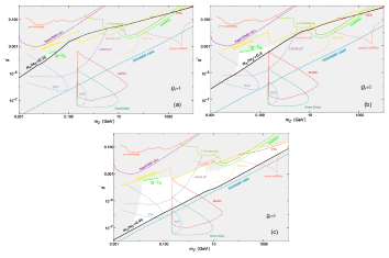 图2:三种典型Z’通道暗物质的可行参数空间