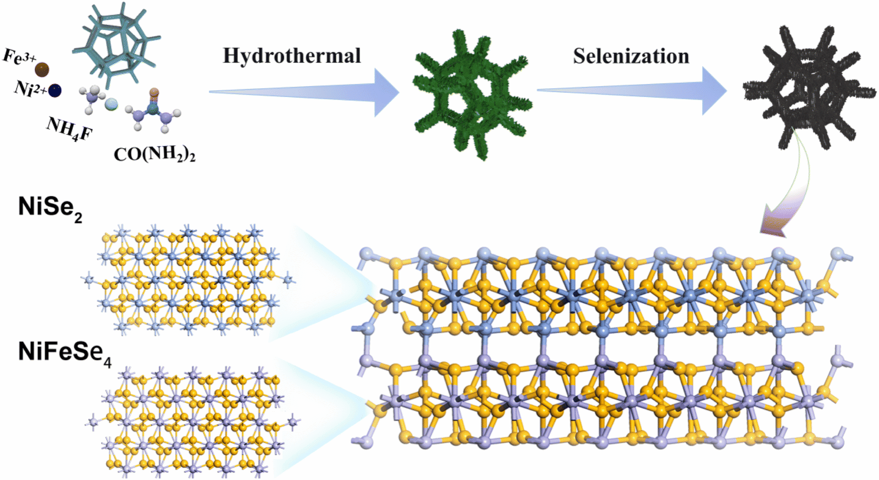 本研究采用原位生长制备方法,有效地制造出了用于高效HER和OER的NiFeSe4/NiSe2异质结构催化剂。硒化改变了材料的基本晶体结构,从而促进了材料内部的电子再分布。此外,硒化后形成的异质结构不仅能提高材料的导电性,还能为催化提供额外的活性区域。同时,内置电场有助于电子再分布。NiFeSe4/NiSe2-8 h 催化剂表现出卓越的性能,只需要218 mV(OER)和121 mV(HER)的过电位就能达到10 mA cm-2的电流密度。使用NiFeSe4/NiSe2-8 h双功能催化剂作为反应的阴极和阳极,在1.572 V的电压下进行了整体水分离反应。这项研究表明,通过使用原位生长技术构建异质结构材料,可以显著提高材料的催化性能。