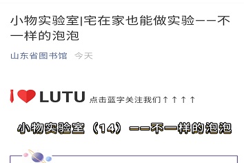 志愿者们提前录好了实验课堂的视频,写好实验课堂的讲稿,将内容发送给山东省少儿图书馆的老师,由他们将实验课堂在山东省少儿图书馆的微信公众号上播出。在视频课程中,志愿者们先用牙签和橡皮只做正方体和三棱锥模型,制作好模型后,就把泡泡液加入到模型中,最后就得到了不一样形状的泡泡。为什么会出现不同形状的泡泡呢?随后志愿者用简单易懂的语言,告诉了小朋友们得到不同形状泡泡的原理。视频的内容虽然简单,但其中的物理知识深奥并且有趣。本次活动收获了较好的社会反响,这期视频收到了很多的点赞,同时受到了小朋友们的喜爱,获得老师家长们的称赞。