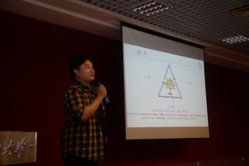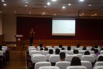 2017级辅导员张虎在新生开学教育会上给同学们详细讲解了学校各项规则和评优助优等学生制度细则。