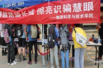 此次活动由黄翔同学和王威栋同学领队,在八食广场开展有奖竞答活动,主持人向在现场同学提问,以一问一答的方式进一步丰富同学们的防诈骗知识,提高同学们防诈骗意识和能力。同时,志愿者们向同学们发放防诈骗知识手册并展示图片,深入浅出地分析现代社会中存在的假借银行短信等各类型的诈骗的手段。志愿者们通过普及诈骗知识告知同学们可能存在的安全隐患,强调大家必须要防范、警惕在先;务必树立安全意识,擦亮眼睛杜绝诈骗行为。